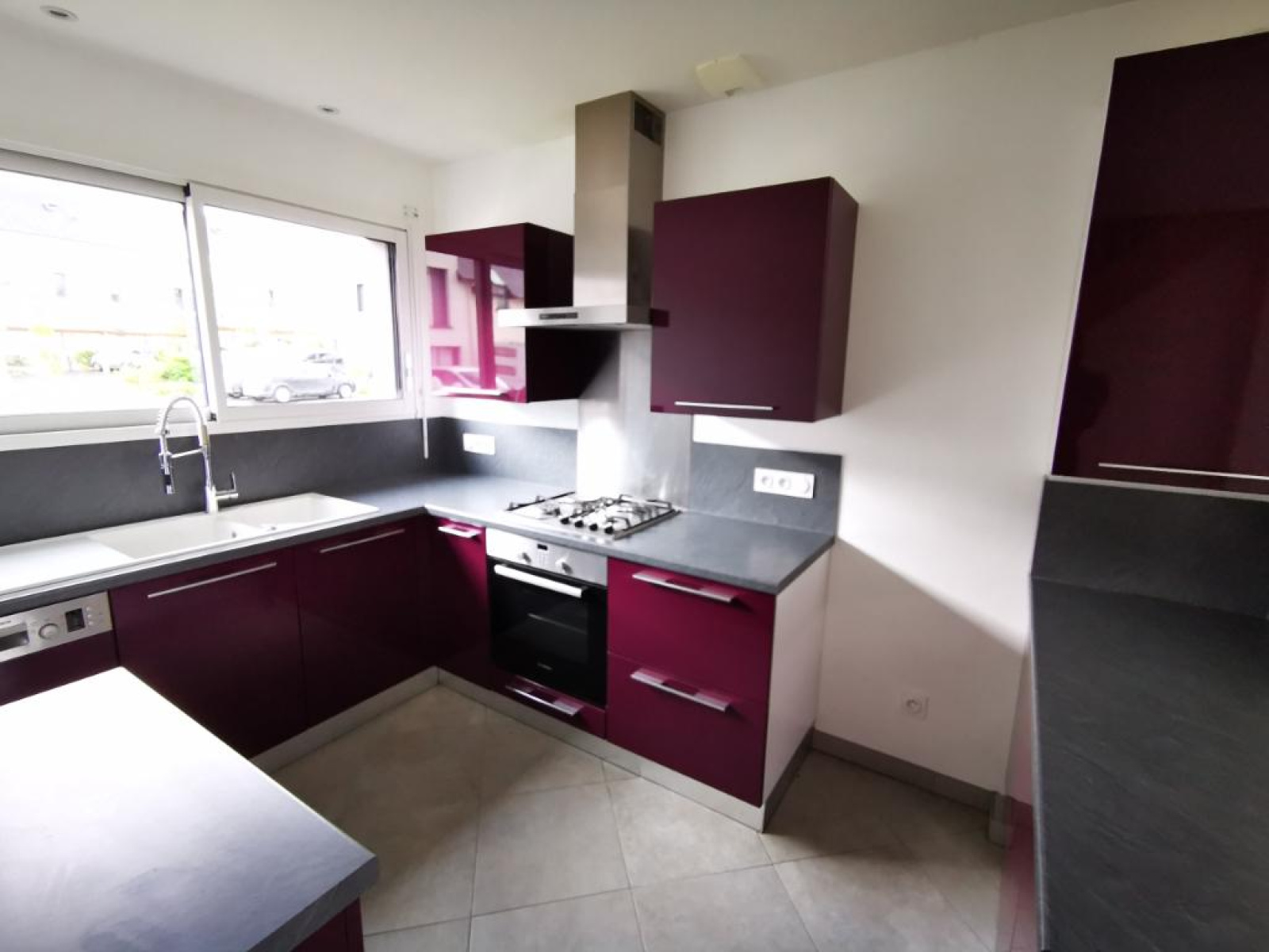 Carrelage - Ouverte aménagée et équipée (four, plaque de cuisson, hotte, lave-vaisselle), Exposition : E,