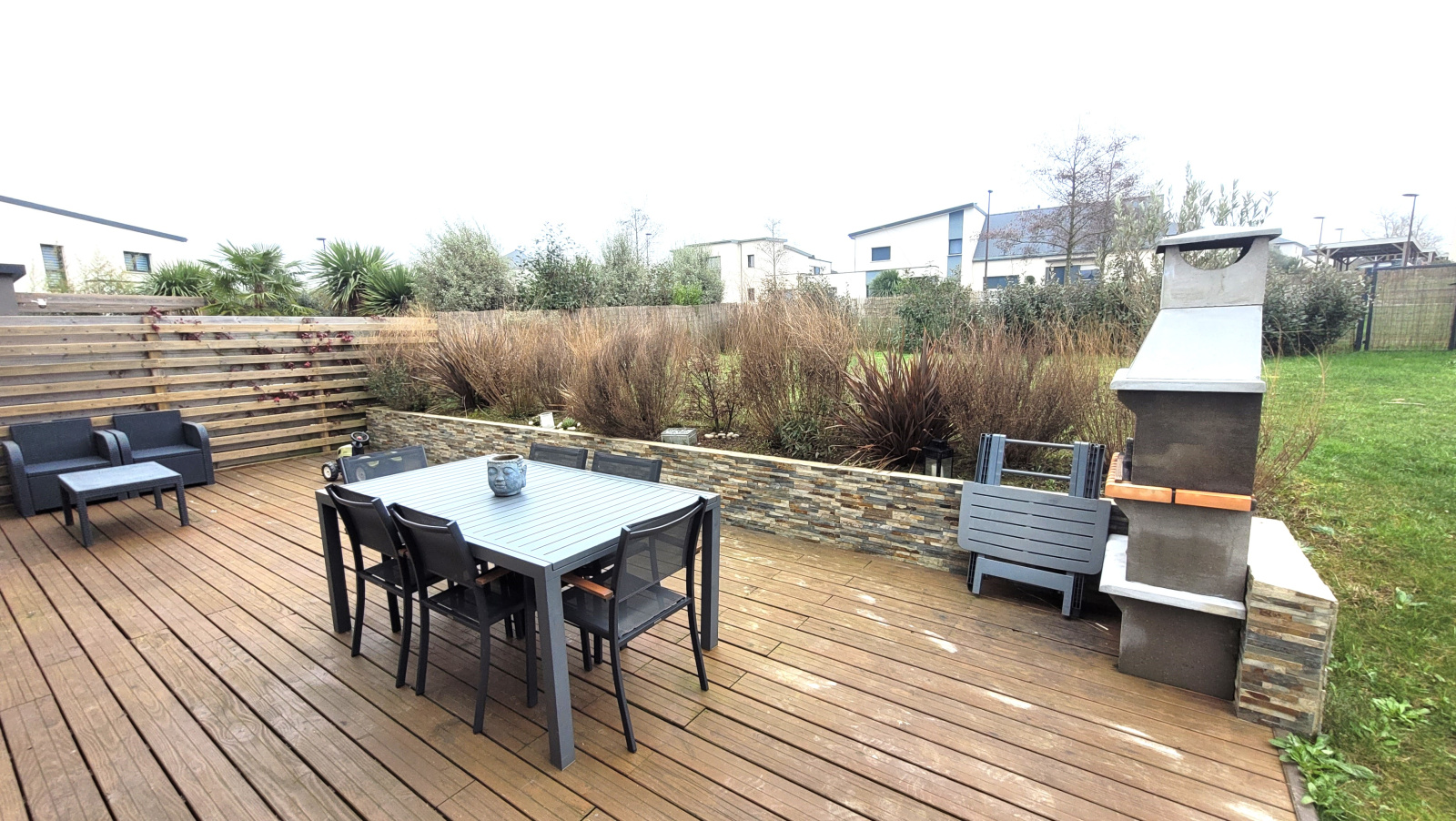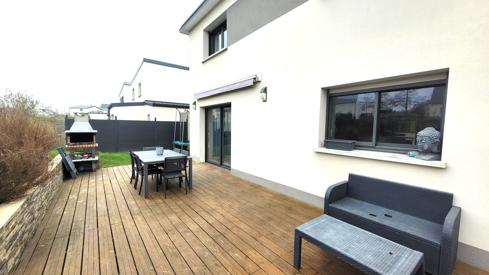 Vous profiterez également d'une parcelle de 348 m² avec sa terrasse exposée Sud agrémentée d'un barbecue.