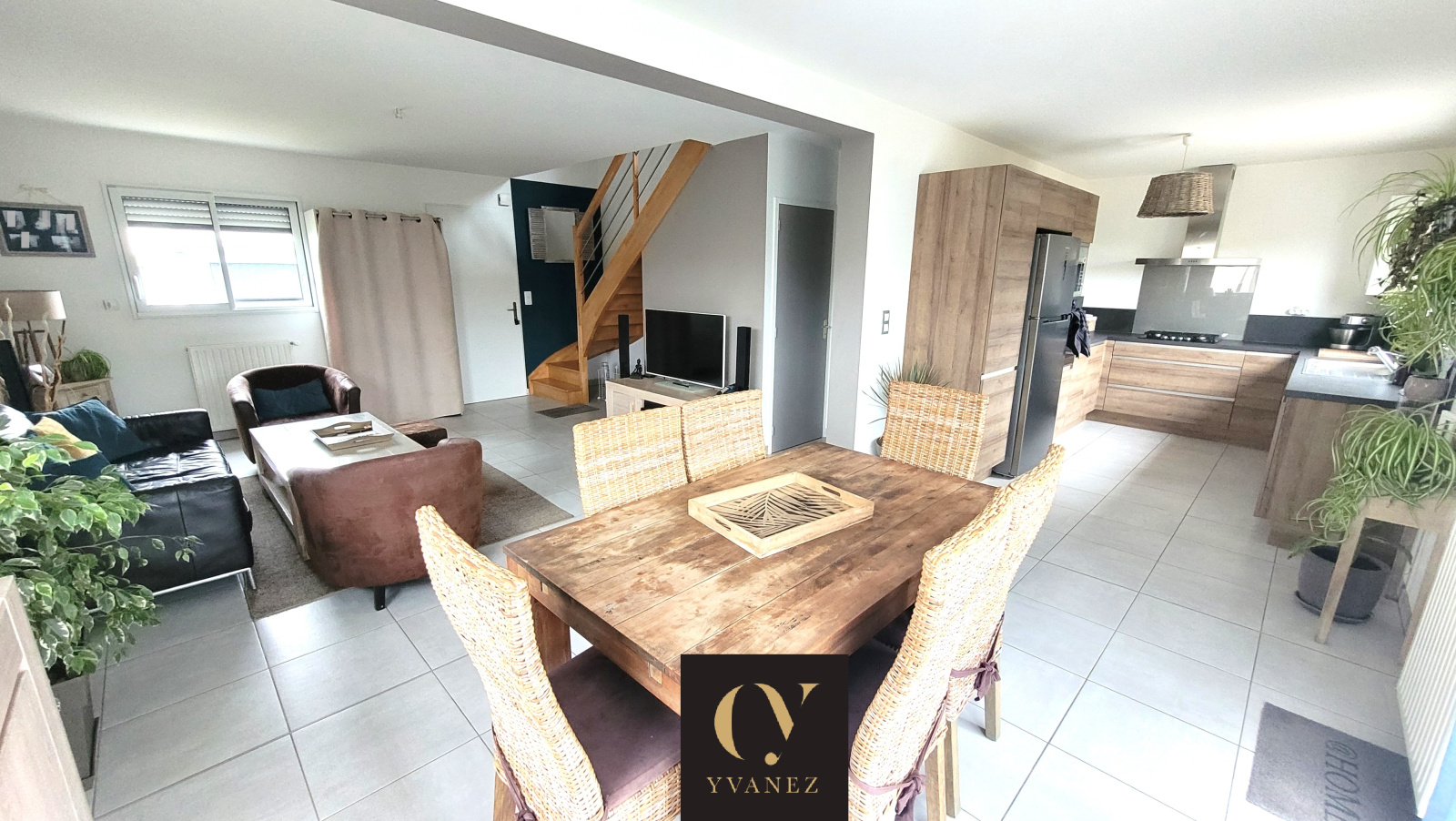 Elle se compose au rez-de-chaussée d'une spacieuse pièce de vie d'environ 43 m² avec cuisine ouverte améngaée et entièrement équipée (sauf réfrégirateur), de WC séparés et d'une pièce pouvant être aménagée en salle d'eau ou buanderie.