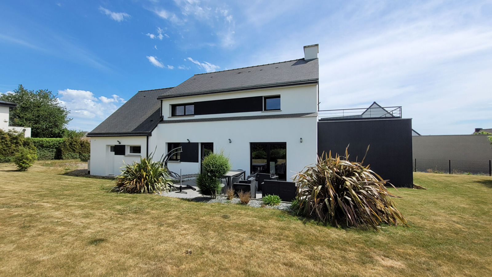 VENDU SUR LA COMMUNE NOUVELLE DE CHÂTEAUGIRON - SECTEUR DE OSSÉ ! Le Cabinet YVANEZ Immobilier vous propose de découvrir cette spacieuse maison de 183 m², non mitoyenne, construite en 2008, située au calme d'une impasse à seulement 5 km du centre-ville de CHÂTEAUGIRON. Elle se compose d'une pièce de vie lumineuse de 54 m², d'un dégagement desservant une cuisine aménagée et équipée, un WC avec lave-mains une chambre et une salle d'eau. À l'étage, un palier donnant accès à 3 chambres dont une avec accès au toit terrasse, une salle de bains, un dressing commun, un WC, une salle de jeux/bureau et une suite parentale avec salle d'eau privative et dressing. Vous profiterez également d'un garage de 41 m² avec espace buanderie et d'une dépendance de 51 m² avec grenier. Le tout sur une parcelle de 1310 m² joliment paysagée avec terrasse. Maison en parfait état d'entretien. Chauffage par aérothermie et plancher chauffant au rez-de-chaussée et à l'étage, aspiration centralisée, volets roulants électriques centralisées... Classe énergie : C - Classe climat : A - Montant estimé des dépenses annuelles d'énergie pour un usage standard : Entre 1400 € et 1940 € (base 2021) Pour de plus amples informations et/ou pour une éventuelle visite, merci de bien vouloir contacter votre agent immobilier indépendant, Angélique YVANEZ : 0299372674 / 0624314589 / cabinet.yvanez@gmail.com