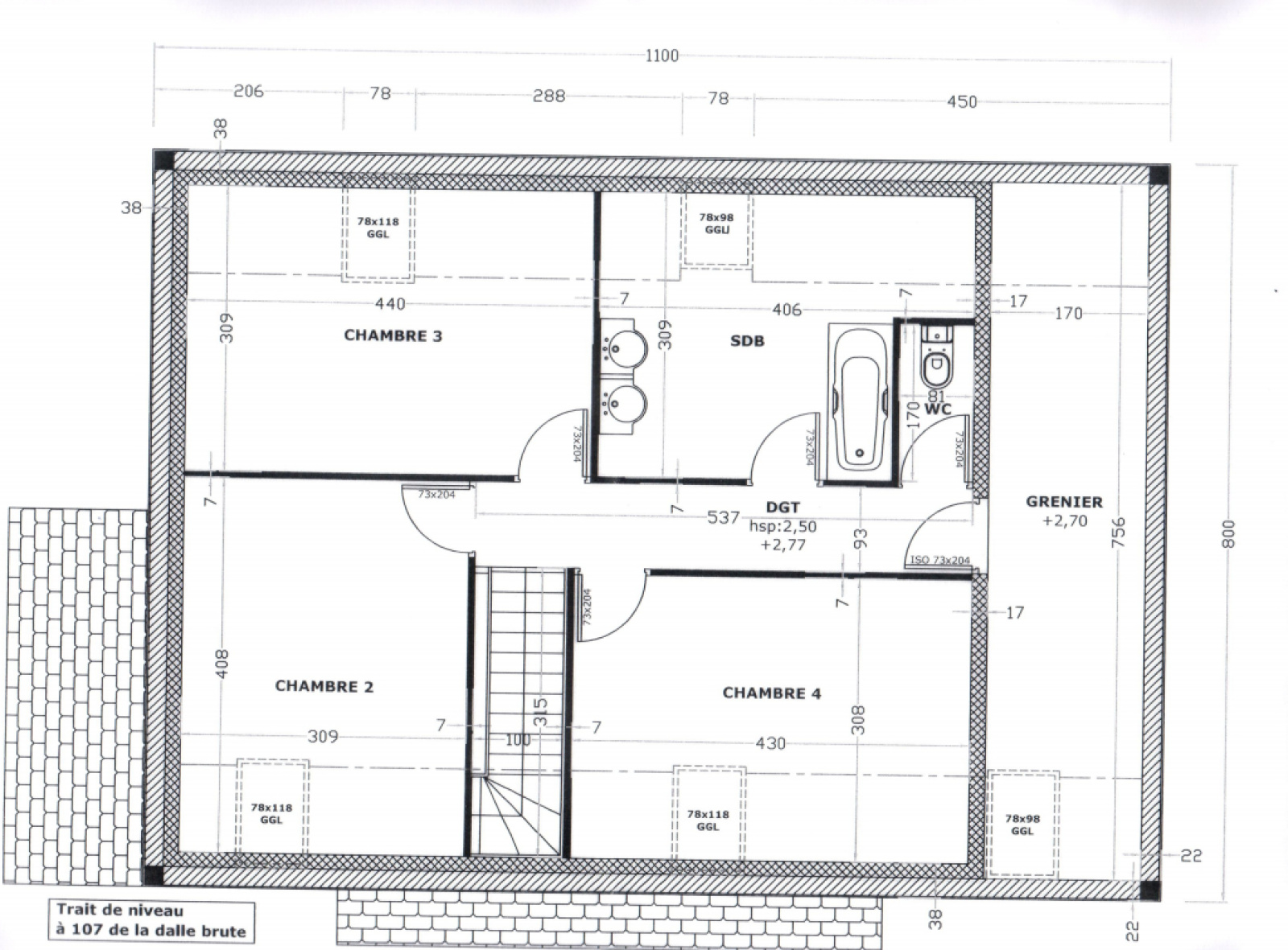 À l’étage, trois autres chambres aux volumes agréables composent un espace nuit familial, propice à l’intimité et au calme.