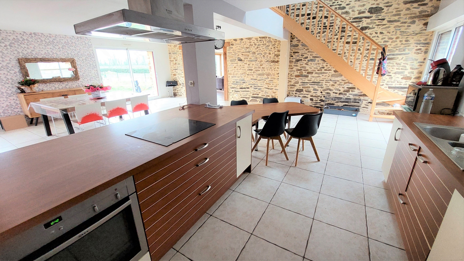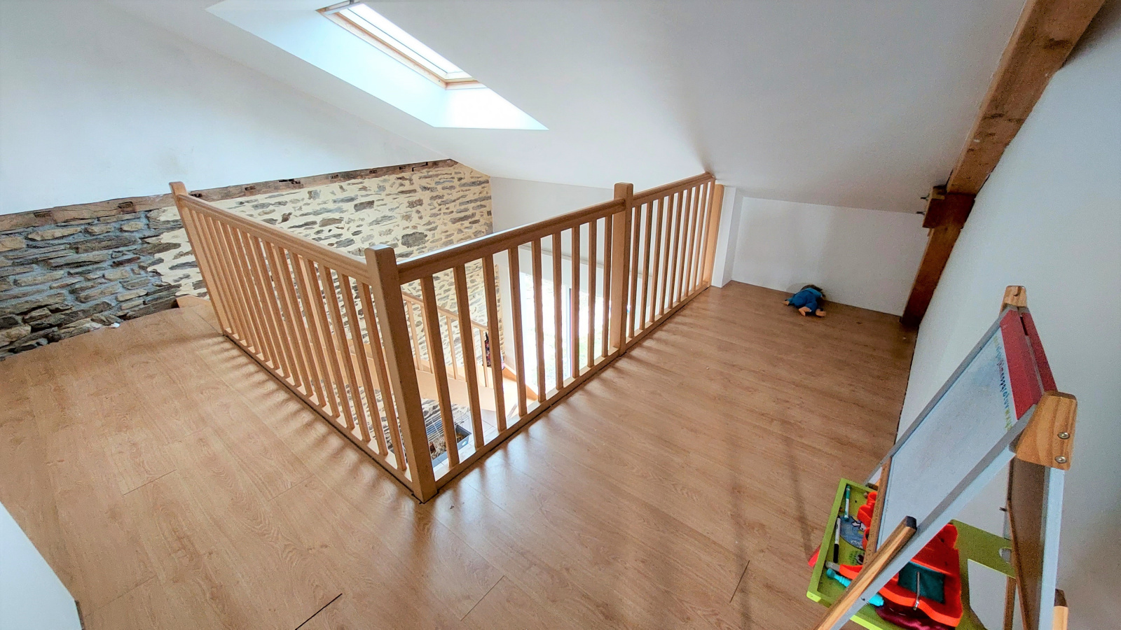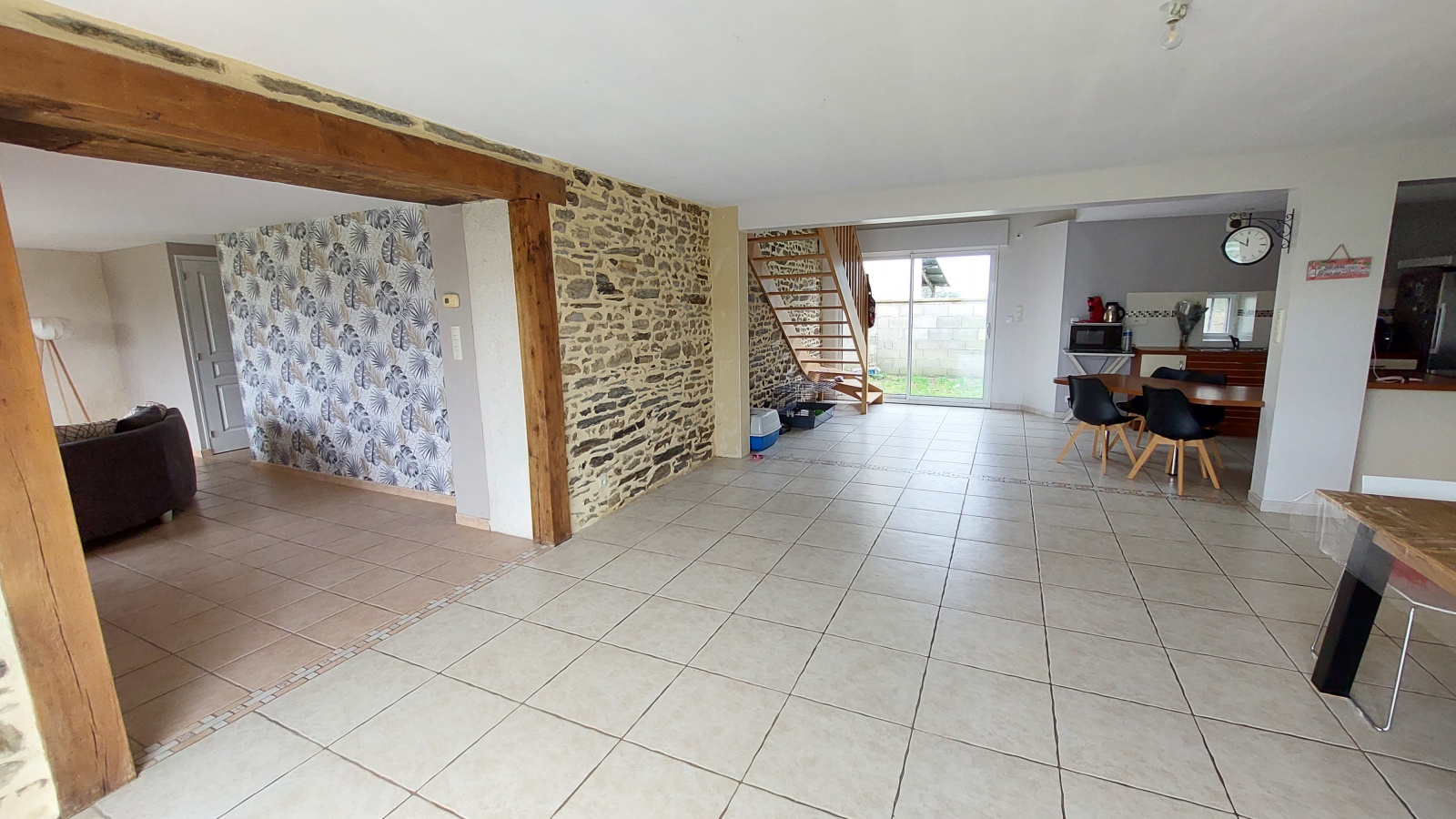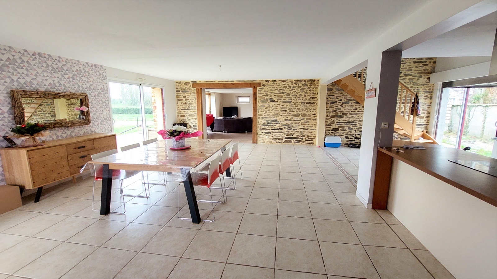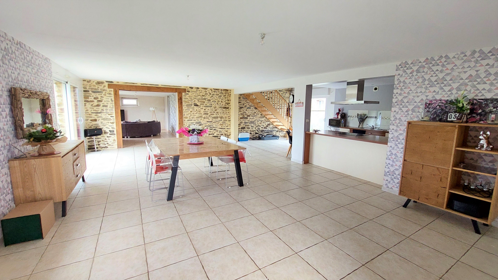 Elle dispose de volumes généreux et d'un indéniable caractère, charme qu'elle doit à sa pierre et à ses poutres apparentes.