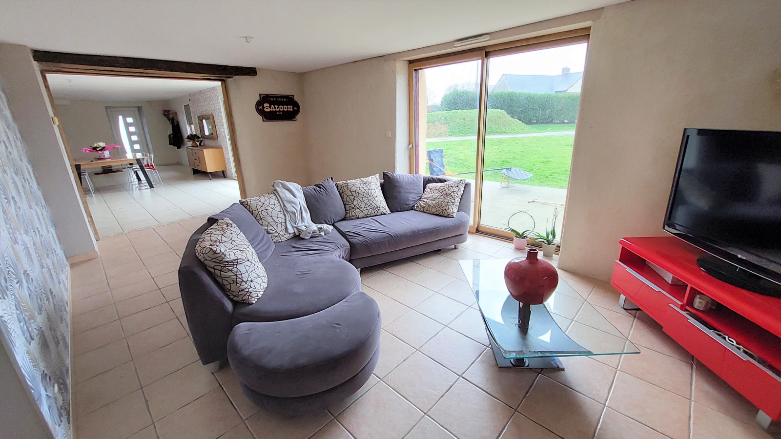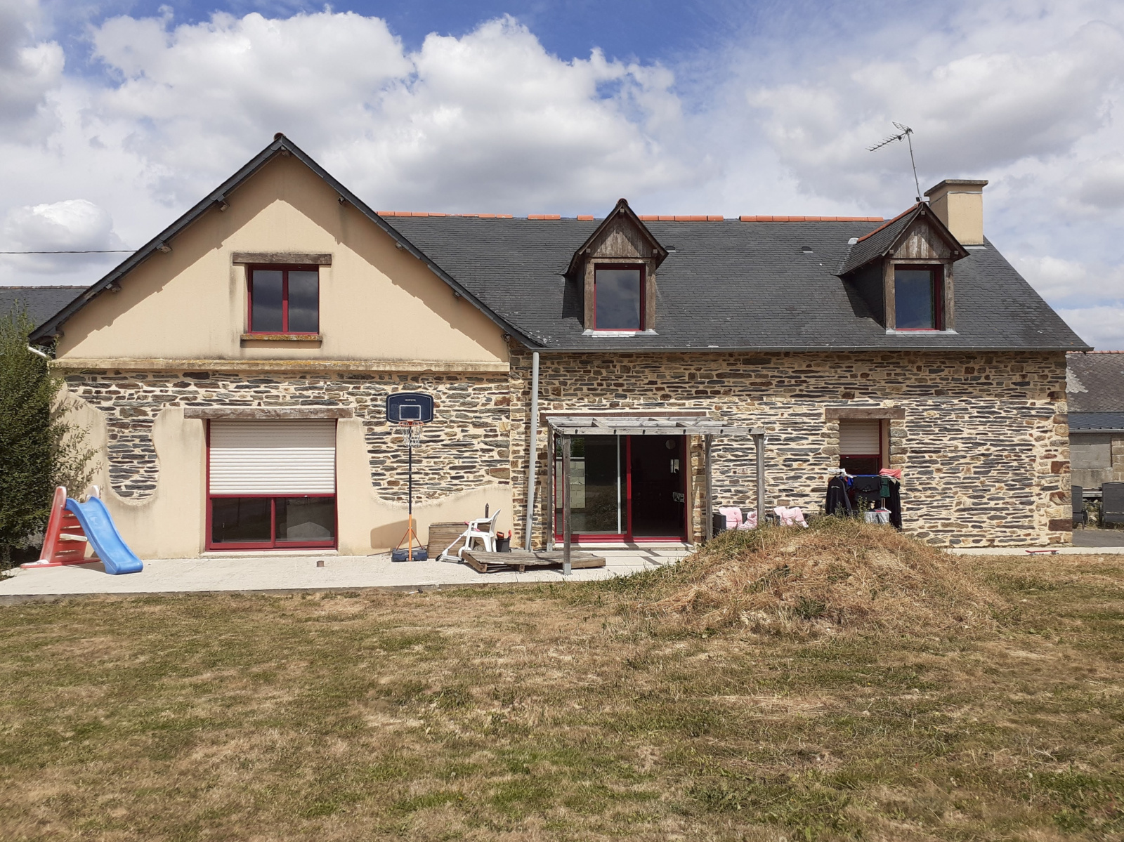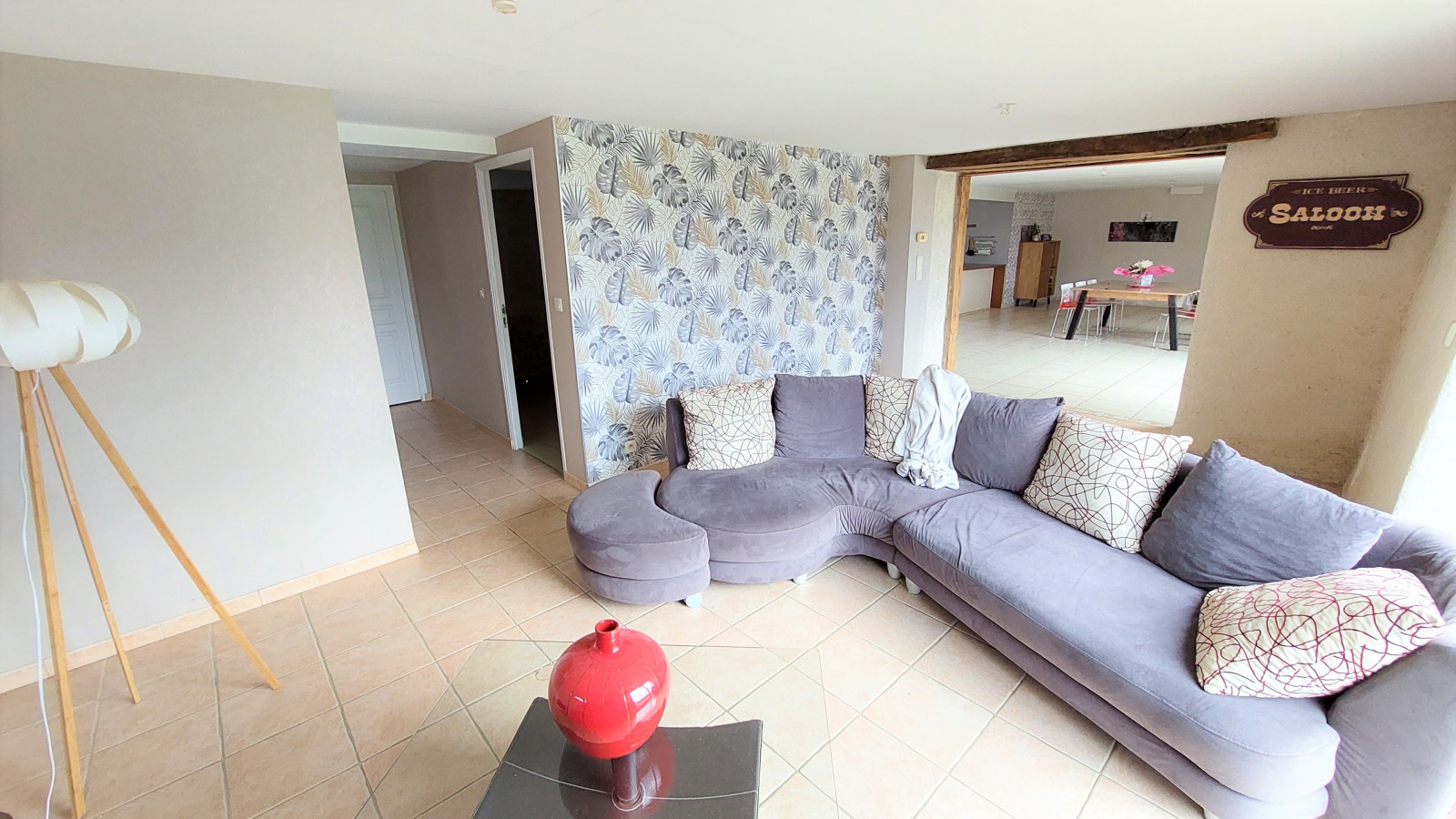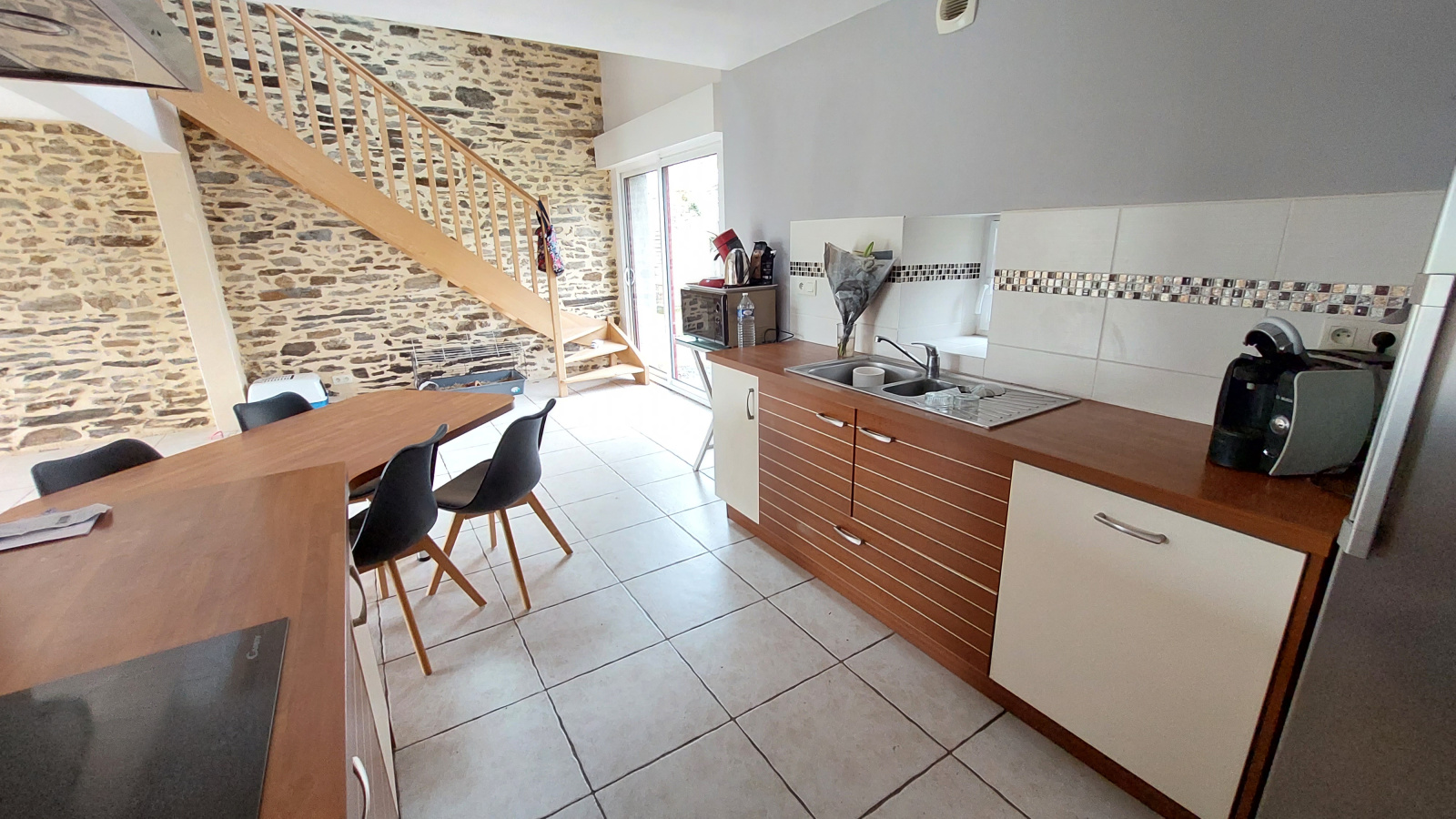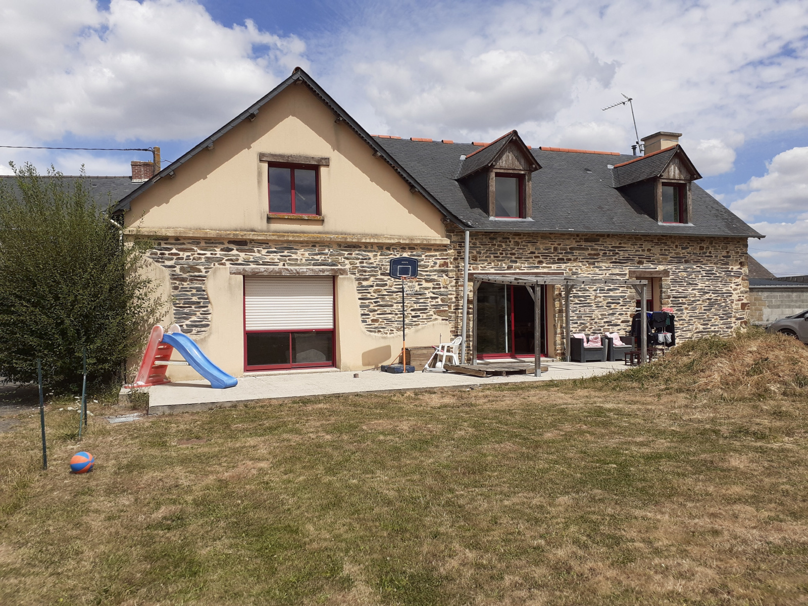 Elle dispose de volumes généreux et d'un indéniable caractère, charme qu'elle doit à sa pierre et à ses poutres apparentes.