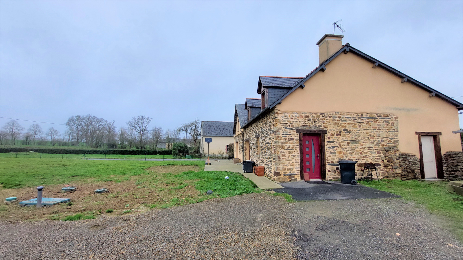 Chauffage par aérothermie avec plancher chauffant au RDC et radiants électriques. Assainissement par microstation neuve (2022).
