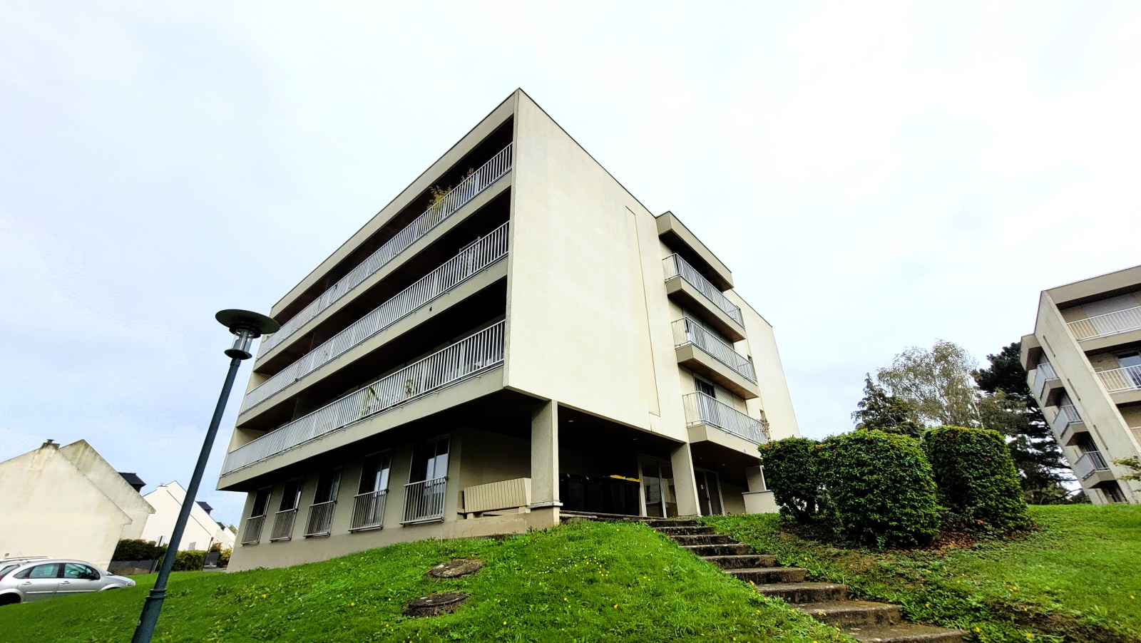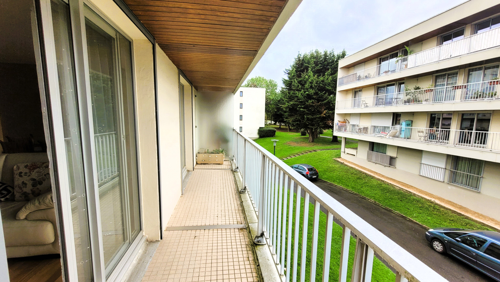 Ce Type 3 de 67 m² construit en 1980 est constitué d'une entrée avec deux placards, d'un salon/séjour donnant accès au balcon Ouest, un dégagement desservant deux chambres sur balcon, une salle d'eau et un WC.
