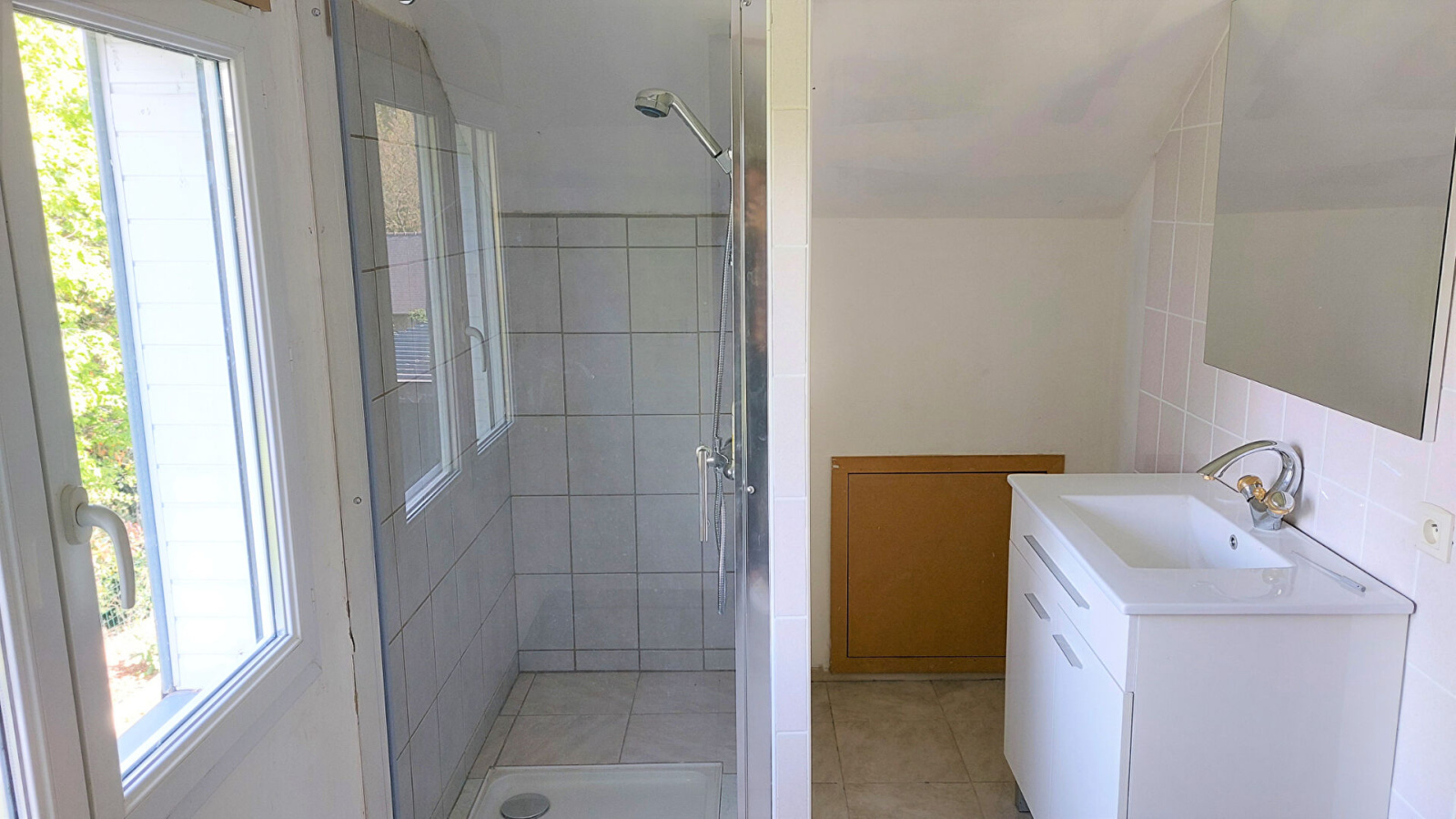 douche + baignoire, sèche-serviette,
